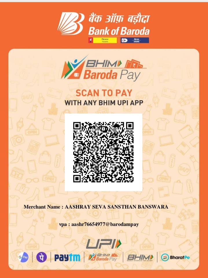The donors are requested to send the ‘Pay-in-Slip’ scanned copy or screen shot of NEFT done on the email id: info@aasharesevasanthan.org to enable Organization to send the donation receipt along with the income tax exemption certificate copy. As the Organization is a non-profit service oriented voluntary organization, its services are completely ‘free of cost’ and for the benefit of the needy and the suffering people. The Organization sustains on public donation, donations from the charitable Organization and grants from the government. In a way, all achievements and its humanitarian services are made possible through donations. The Organization in the interest of the disabled and suffering humanity, sincerely request the viewers, to kindly come forward with a generous hand to strengthen its activities in serving the oppressed humanity with utmost dedication Donations made to ‘Aashray seva santhan’ are tax exempted U/s 80G (50% for Salaried Individuals) under Income Tax Act. 1961. Donors are requested to remit their donations through Cheque/DD drawn in favor of ‘Aashray seva sansthan’ payable at Udaipur and send it to the Organization. The donors may kindly also remit the donations direct in any of the following Bank i.e. Bank Detail